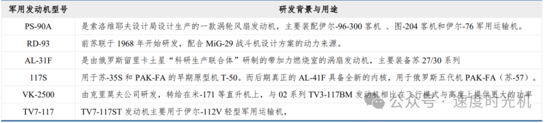1. 克里莫夫设计局:代表作为RD-33/93中推涡扇,米格-29、JF-17“枭龙”;