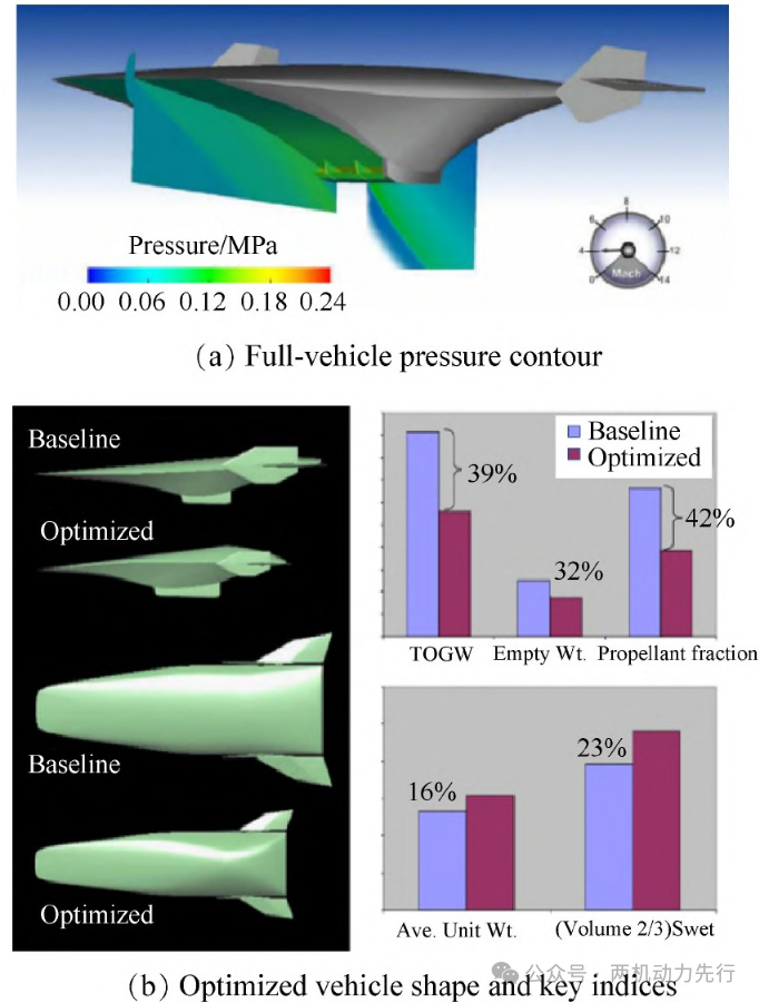 高超声速吸气式推进作为一种极具潜力的临近空间推进方式,近年来得到了广泛的关注。随着飞行速度的增加,飞行器的气动阻力急剧增加,可能会导致推阻失衡和升阻比下降,影响飞行器的加速和巡航性能。高超声速飞行要求兼顾飞行器的气动性能和吸气式发动机的推力性能,飞/发一体化集成是吸气式超声速飞行器的经典难题。为此,早在20世纪80年代,国内外开展了大量飞行器/发动机一体化(以下简称飞/发一体化)研究以优化升阻比和推阻比,实现飞行器机体气体性能与发动机推力性能的相互匹配。目前国内外高超声速飞行器一体化研究几乎都采用了数值模拟和试验验证相结合的方法。例如,由美国波音公司研制的X-51A 高超声速飞行器设计过程中采用CART3D 和OVERFLOW 软件进行了大量数值计算。近年来内外流耦合一体化模拟技术的发展使得飞/发整体寻优成为可能。关注公众号: 两机动力先行,*获取海量两机资料,聚焦两机关键技术!