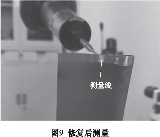 (1)叶尖修复加工后,内、外曲面轮廓形状符合设计图,与原基体叶型连接光滑过渡。