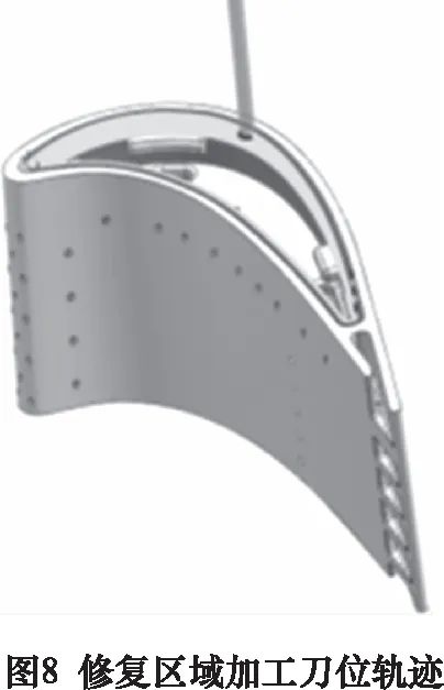 步骤1:待修复叶片叶尖损伤区域经过融覆、堆焊方式填充后,通过在机检测获取叶尖损伤邻近区域的测量信息。