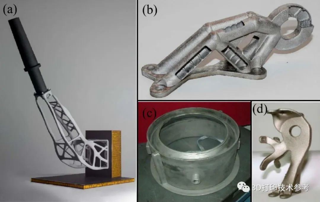 LPBF制造的AlSi10Mg Sentinel-1 天线支架( b )LPBF制造的Ti6Al4V高价值航空支架( c )激光增材制造的 In718法兰 ( d ) LPBF制造的Ti6Al4V飞机支架