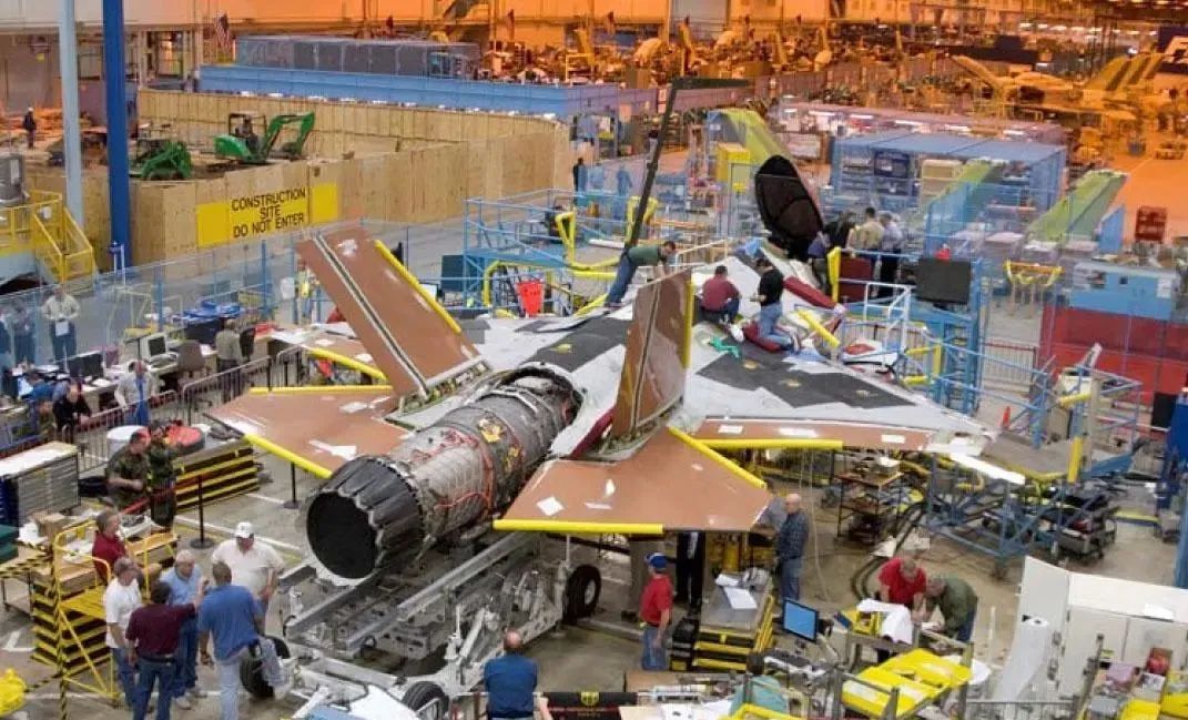 在装配线上的F135系列发动机。