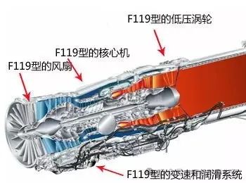 F135发动机是F119发动机的衍生型。F119发动机由3级风扇,6级高压压气机、带气动喷嘴、浮壁式火焰筒的环形燃烧室、单级高压涡轮、高压涡轮转向相反的单级低压涡轮、加力燃烧室与二维矢量喷管等组成。整台发动机分为:风扇、核心机、低压涡轮、加力燃烧室、尾喷管和附件传动机匣等6个单元体,另外还有附件、FADEC及发动机监测系统。其加力推力155.7千牛,中间推力105.0千牛,总压比35,涵道比0.3,涡轮前温1850-1950K,*大直径1.13米,长度4.826米、重量1460千克。